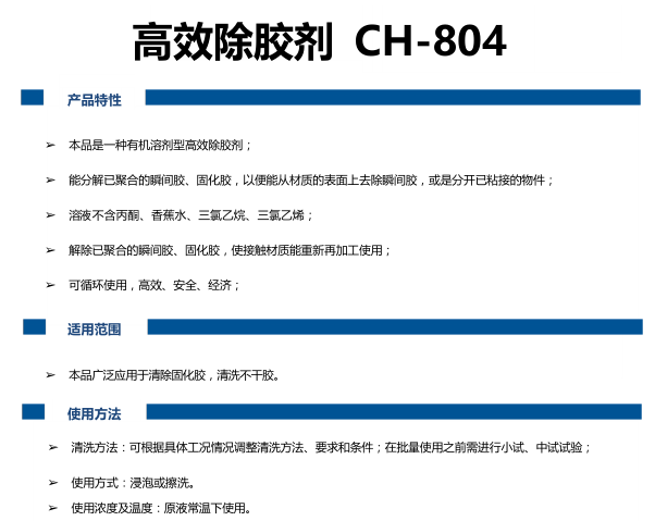 本品是一種有機(jī)溶劑高效除膠劑;能分解已聚合的瞬間膠、固化膠,以便能從材質(zhì)的表面上去除瞬間膠,或是分開(kāi)已粘接的物件;溶劑不含丙酮、香蕉水、三氯乙烷、三氯乙烯;可循環(huán)使用,高效、安全、經(jīng)濟(jì);