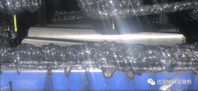 更換純油后,優(yōu)潤(U.LUBE)服務(wù)團隊技術(shù)人員定期對1號磨機開式齒輪潤滑劑使用效果做了持續(xù)的跟蹤觀察。更換齒輪副后大、小齒輪齒面溫度分布基本平穩(wěn)正常,溫差不大,小齒兩側(cè)軸承振動情況同樣平穩(wěn)正常,磨機開式齒輪油膜良好均勻,可目測齒輪副工作面情況,齒輪工作面光潔平整、無異常損傷。