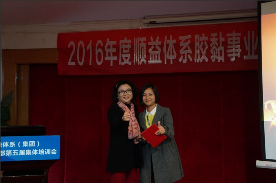 頒發(fā)膠黏業(yè)務(wù)第一名獎(jiǎng)