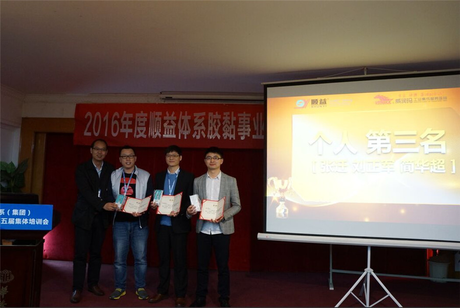 頒發(fā)膠黏業(yè)務(wù)個(gè)人第三名獎(jiǎng)
