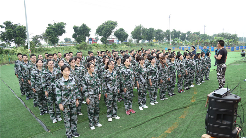 本次拓展活動設計全部都是團體性,要求所有員工相互協作,共同完成。拓展開始前,教練組織員工站軍姿,并通過“融冰之旅”訓練活動初步形成熱烈融洽的團隊氛圍,為接下來的拓展培訓做好心理準備。熱身活動結束后,教練將員工隨機分成了六隊,員工們以小分隊為單位,共同完成定隊名、喊口號、集體展示,并逐一挑戰“遁入魔道”、“魔者生存”、“走火入魔”等拓展培訓項目和競賽活動。盡管它是一種超越常人生理極限、心理極限的訓練模式,但是員工們依然積極參與,相互配合,全力以赴,挑戰自己的極限。