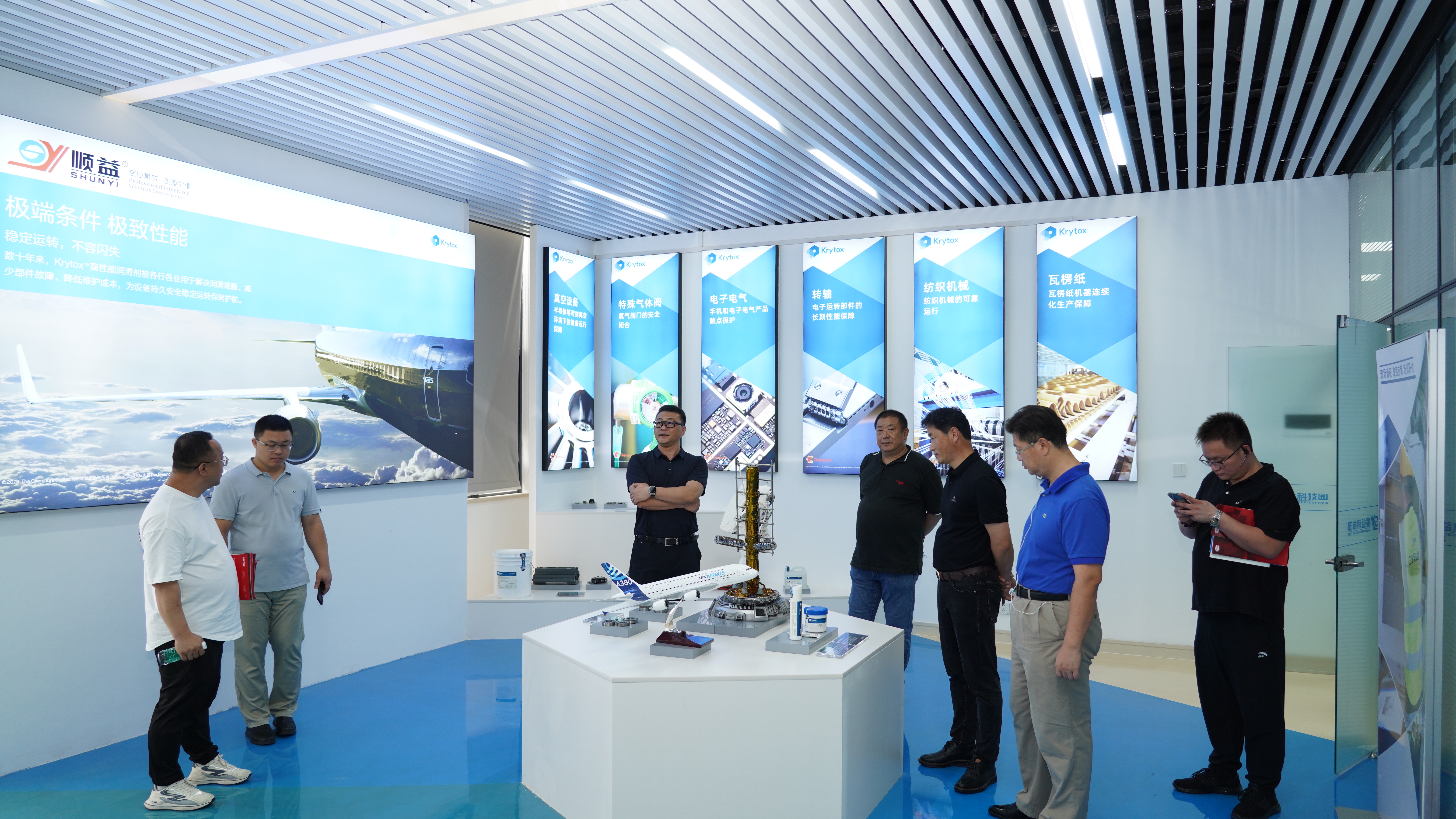 到訪人員先后參觀了順益科技園噴涂實驗中心、新材料應用創新基地建設與成果展、工業集成服務展示體驗中心、德國漢高樂泰體驗中心、Krytox高性能潤滑劑應用展示廳、新能源汽車新材料應用展示廳、高性能彈性體及塑料應用展示廳、特種功能涂層材料應用展示廳及順益科技園新材料科普教育基地等地。參觀人員對順益新材料新技術應用創新基地的發展取得的成績給予了充分肯定。