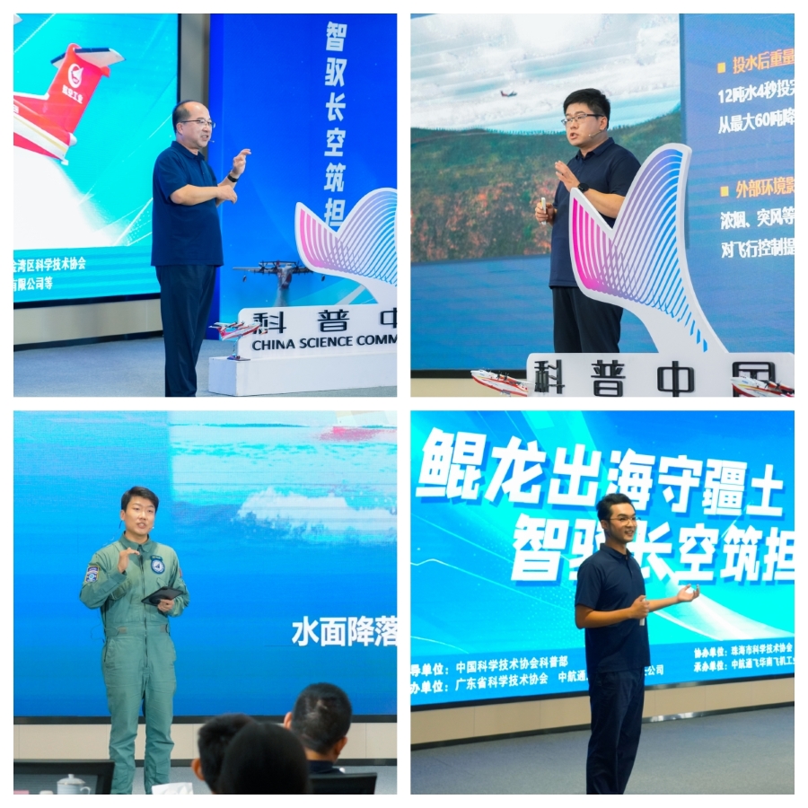 作為中國(guó)大飛機(jī)“三劍客”之一的AG600“鯤龍”,是全球起飛重量最大的民用水陸兩棲飛機(jī),填補(bǔ)了我國(guó)在大型特種民用飛機(jī)領(lǐng)域的空白。本次演講以“鯤龍出海守疆土 智馭長(zhǎng)空筑擔(dān)當(dāng)”為主題,聚焦AG600“鯤龍”大型水陸兩棲飛機(jī),邀請(qǐng)中國(guó)航空工業(yè)集團(tuán)通飛AG600系列總設(shè)計(jì)師黃領(lǐng)才,中國(guó)航空工業(yè)集團(tuán)通飛華南副總經(jīng)理馬建明、試飛員安瑞,中國(guó)航空工業(yè)集團(tuán)通飛研究院航電部設(shè)計(jì)師李俊勰四位專家,分別從不同角度向公眾展現(xiàn)我國(guó)在高端裝備制造與應(yīng)急救援領(lǐng)域的跨越式發(fā)展。為珠海師生帶來(lái)了一場(chǎng)別開(kāi)生面的科普盛宴。他們以生動(dòng)的語(yǔ)言、詳實(shí)的資料,深入淺出地講述了AG600“鯤龍” 背后的故事,從研發(fā)歷程中的重重挑戰(zhàn),到試飛階段的一次次突破,每一個(gè)細(xì)節(jié)都彰顯著科技工作者的智慧與擔(dān)當(dāng)。